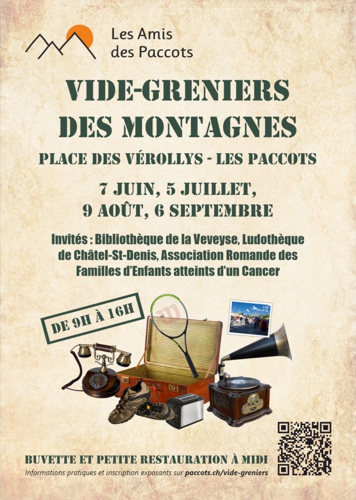 Les Vide-greniers des Montagnes réunissent une centaine d’exposants au cœur d’un cadre naturel magnifique, où petits et grands visiteurs peuvent admirer les trésors mis en vente tout en se délectant de l’air pur de la montagne.